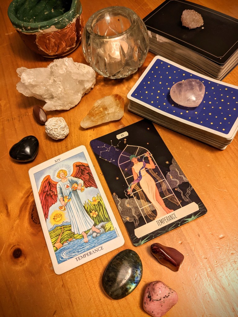 source: (Left) Rider-Waite and (Right) Zodiac Tarot Temperance Cards